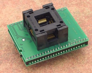 • Insert adapter into programmer's ZIF socket. If you are in doubts about orientation of the adapter in programmer's ZIF socket, there is a rule of thumb - orientation of adapter's name text is the same as orientation of the text on the top of programmer.