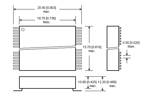 Fuß 2 Reihen, 2x24 Pins, 0.6x0.6mm,  Reihen Abstand 600mil